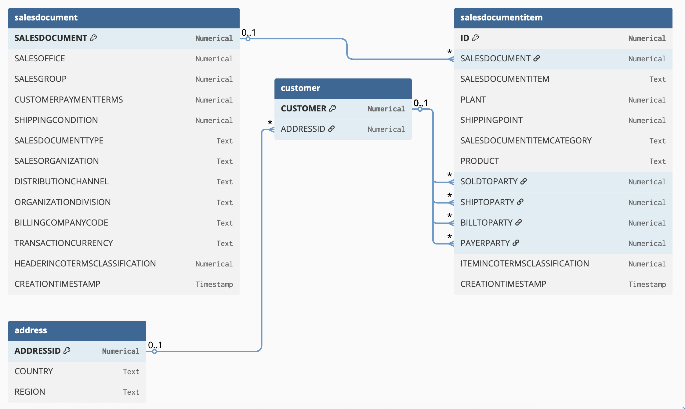 Database Description: The Sales Autocompletion Linked Business Tables (SALT) database is an enterprise sales order relational dataset released by SAP AI Research. It models end-to-end business transactions in an ERP system, centered on sales document headers and line items, and linked to customer and address master data. The dataset captures structured information such as sales offices and groups, plants and shipping points, payment terms, shipping conditions, and Incoterms classifications. Each sales document and item is timestamped by creation time, enabling temporal modeling of business processes. SALT is designed to support multi-table relational learning tasks, particularly categorical prediction problems in real-world supply chain and order fulfillment settings.